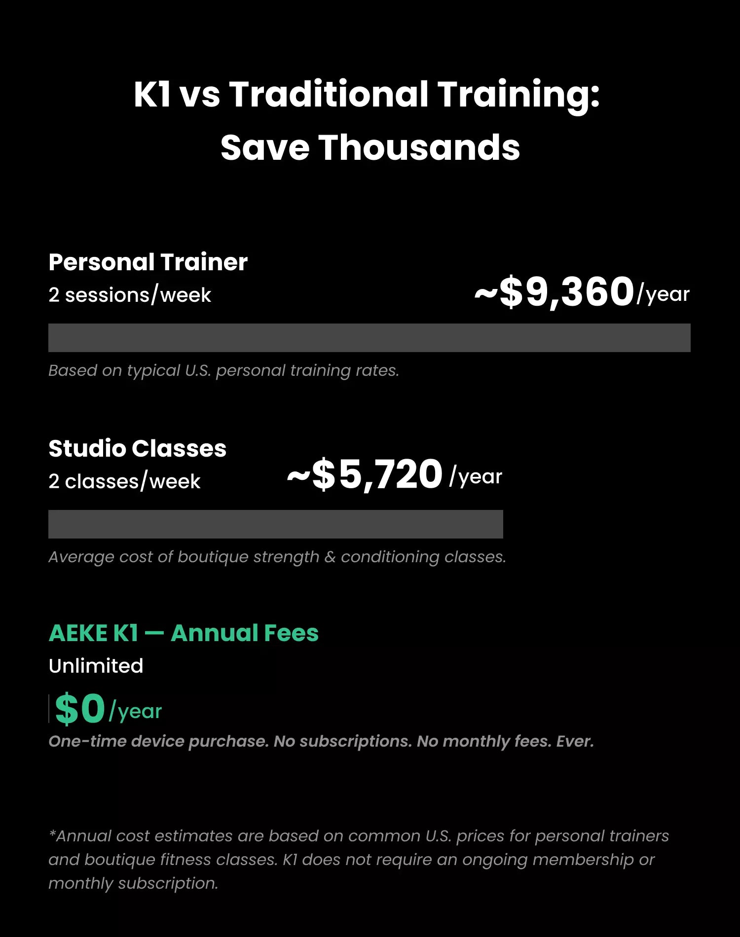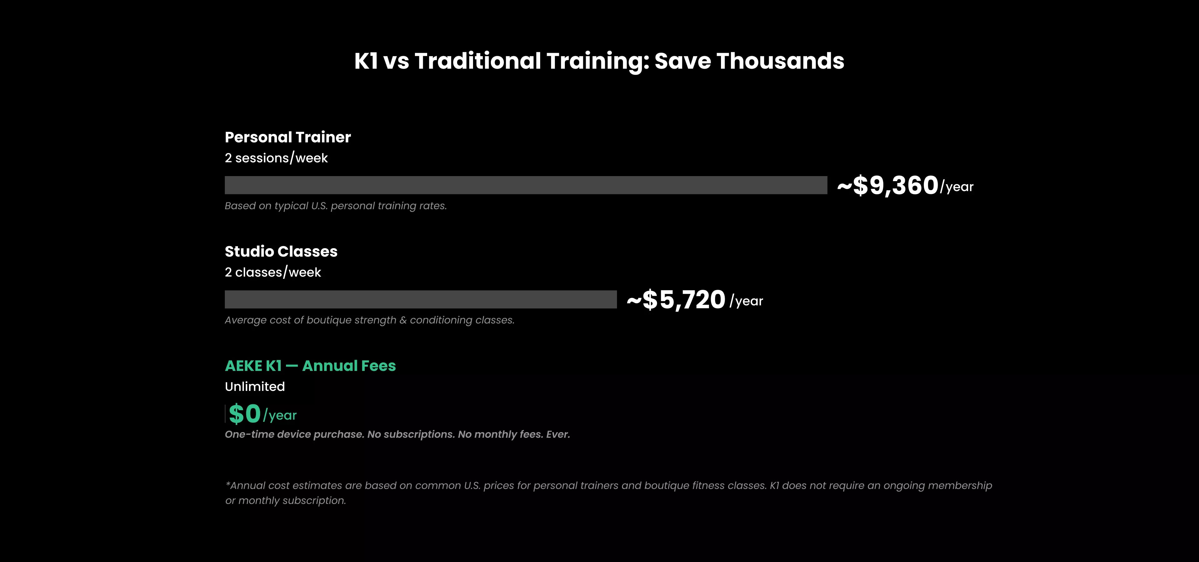Does AEKE smart home gym require a subscription or additional costs for exercises?