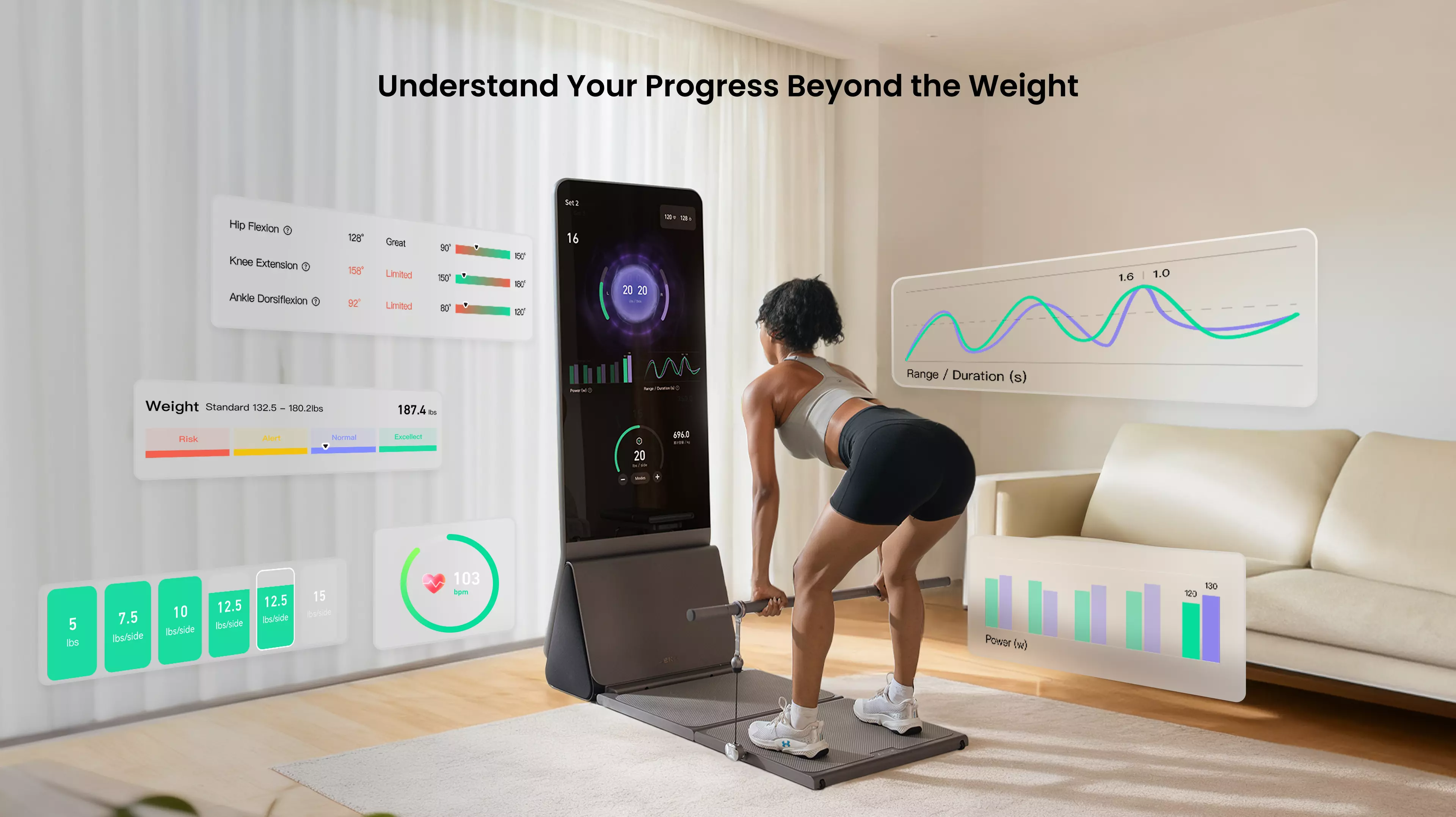 Perform classic compound lifts without bulky plates or racks, with smart digital weight feedback.